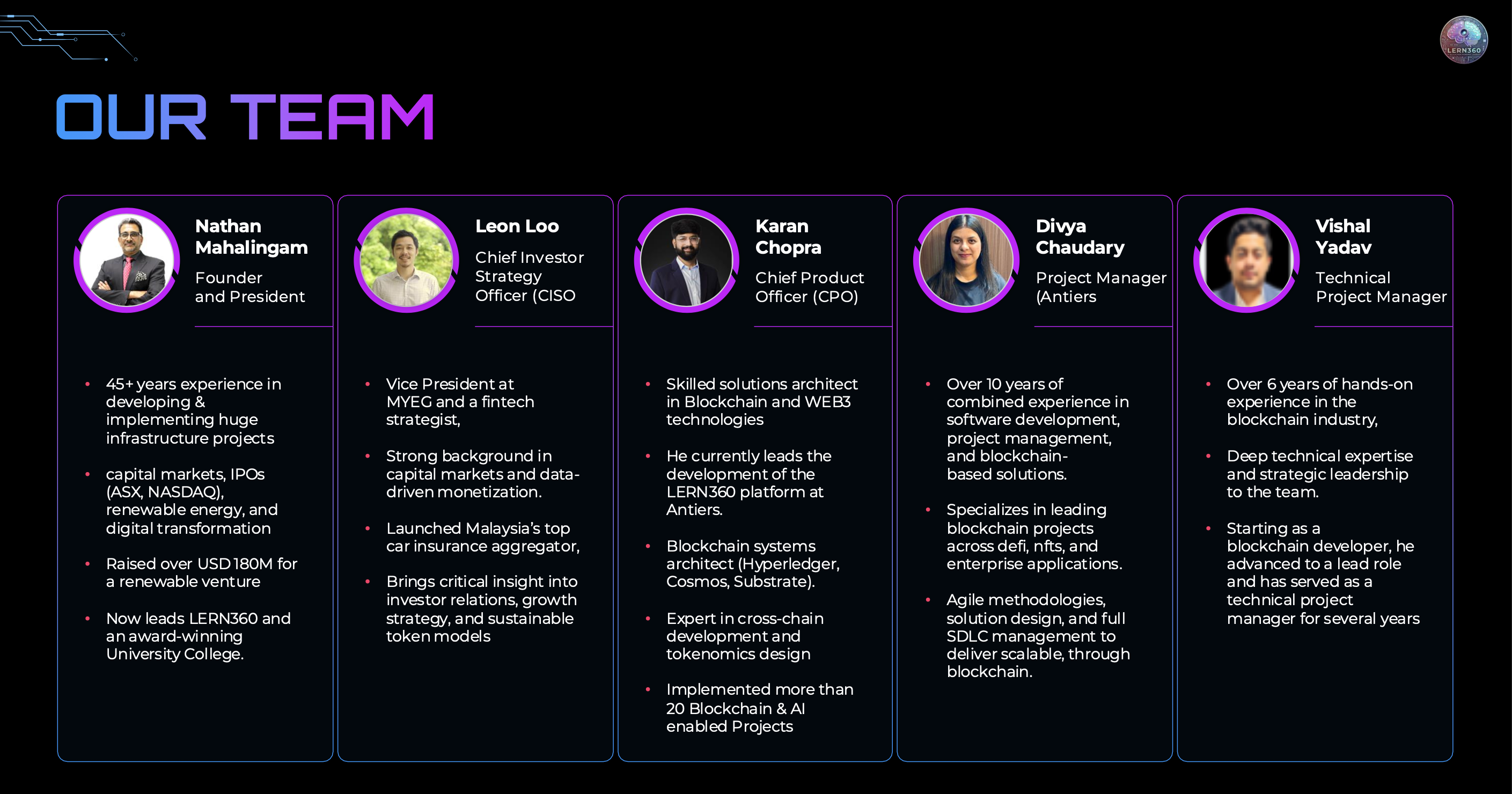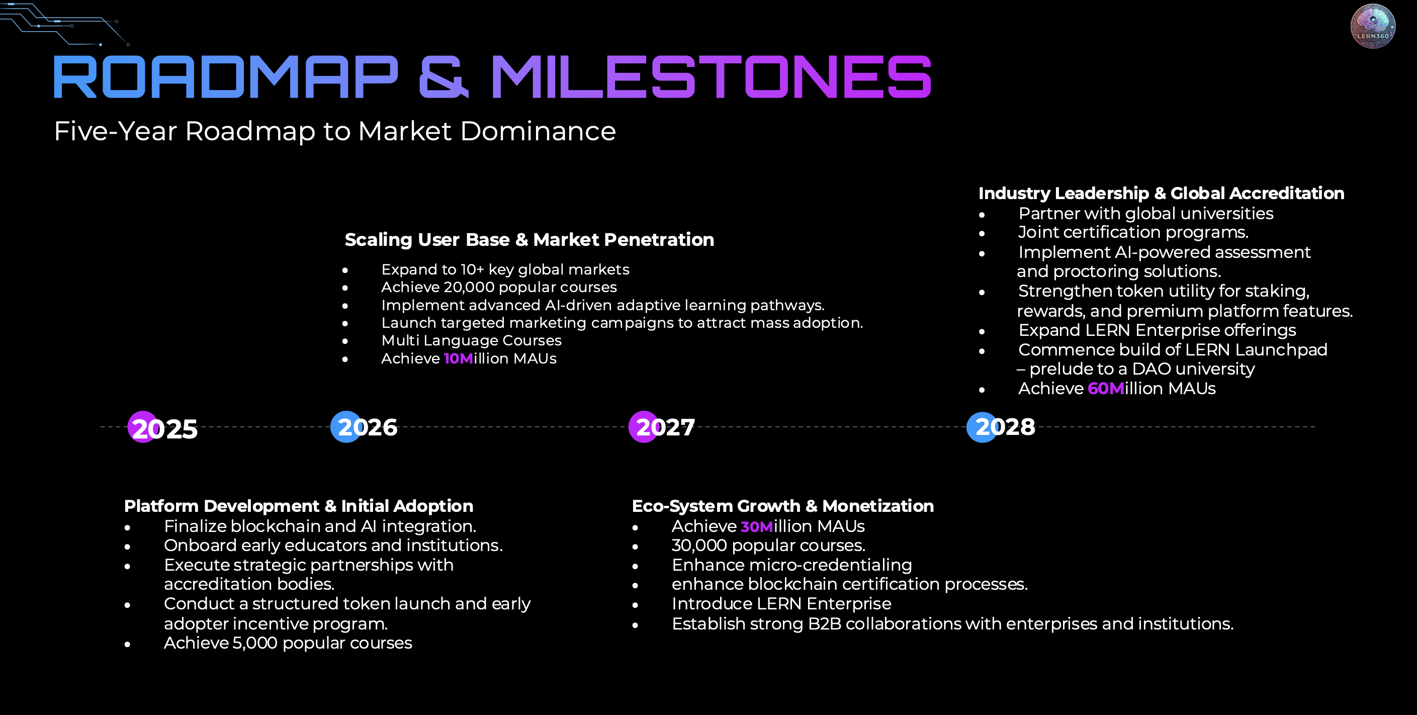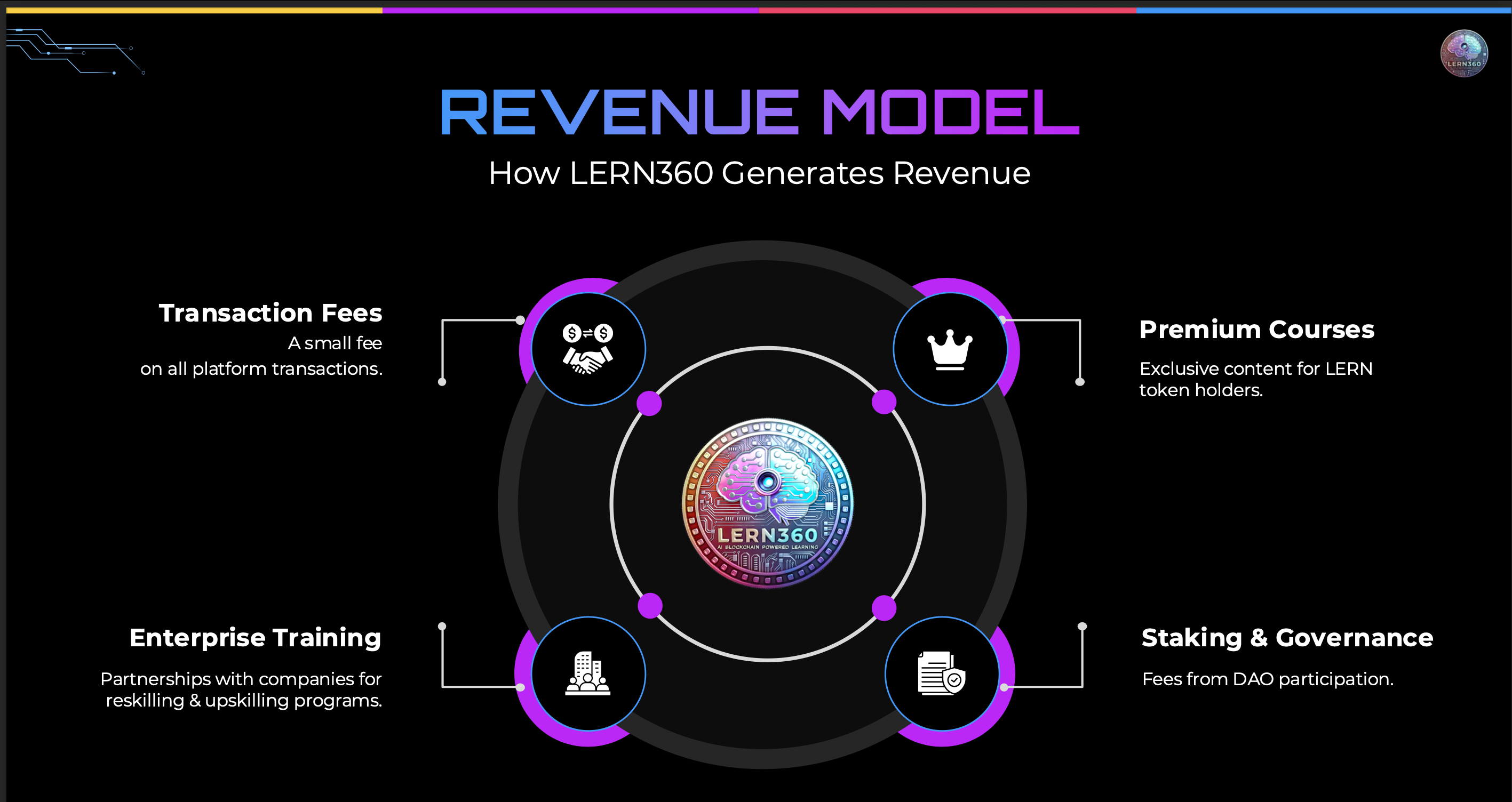 LERN360 is a decentralized e-learning platform leveraging blockchain and AI to provide accessible, affordable, and accredited education globally. Through tokenized incentives and smart contracts, it ensures transparent, secure, and high-quality learning experiences for individuals and institutions alike.