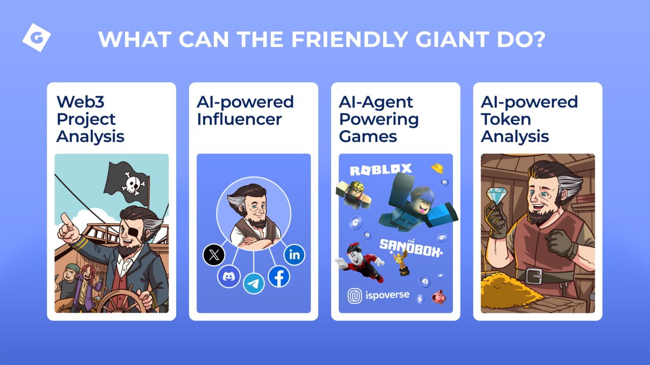 The Friendly Giant AI is an autonomous AI agent, AI KOL, analyst, and in-game agent, powered by the DeepSeek R1 model. With its enhanced reasoning capabilities and Chain of Thought (CoT), the AI agent can tackle complex problems and process input streams from various outlets - news channels, trading charts and games.