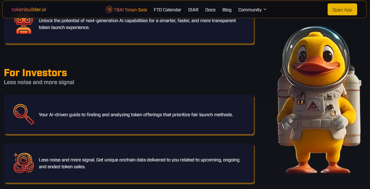 TokenBuilder is a next-generation platform designed to address one of the crypto market’s most pressing challenges: Token Offerings. Our Fair Token Offering (FTO) framework empowers Web3 projects to launch tokens more transparently, creating fairer opportunities for retail investors.