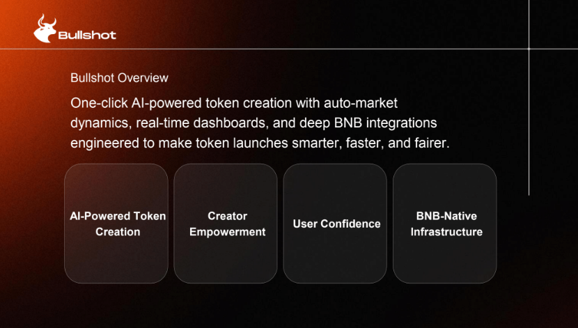 Bullshot is the AI-powered launchpad redefining how meme tokens are created, traded, and adopted on BNB Chain and OKX X Layer. Anyone can launch a token in seconds, with branding, tokenomics, and bonding curve generated by AI. Gasless trading is powered by the proprietary x402 engine, with real-time charts and a gamified creator economy built for virality.